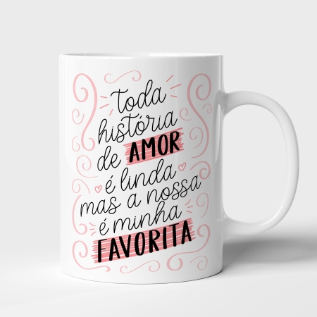 • Caneca de Cerâmica “Nossa História” – Toda história de amor é linda, mas a nossa é minha favorita