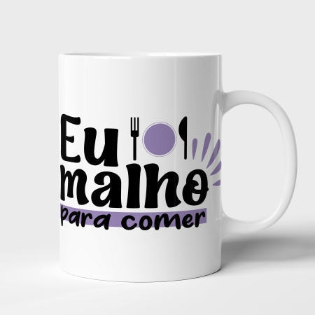 • Caneca de Cerâmica Fitness – “Eu Malho Pra Comer”