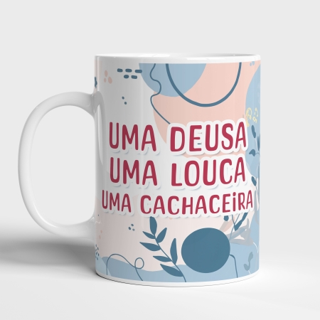 • Caneca de Porcelana Uma Deusa, Uma Louca, Uma Cachaceira