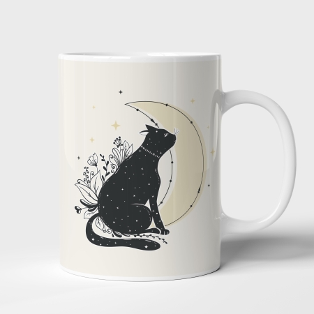 • Caneca de Cerâmica “Gato Preto na Lua com Flores” – Magia e Natureza em Harmonia