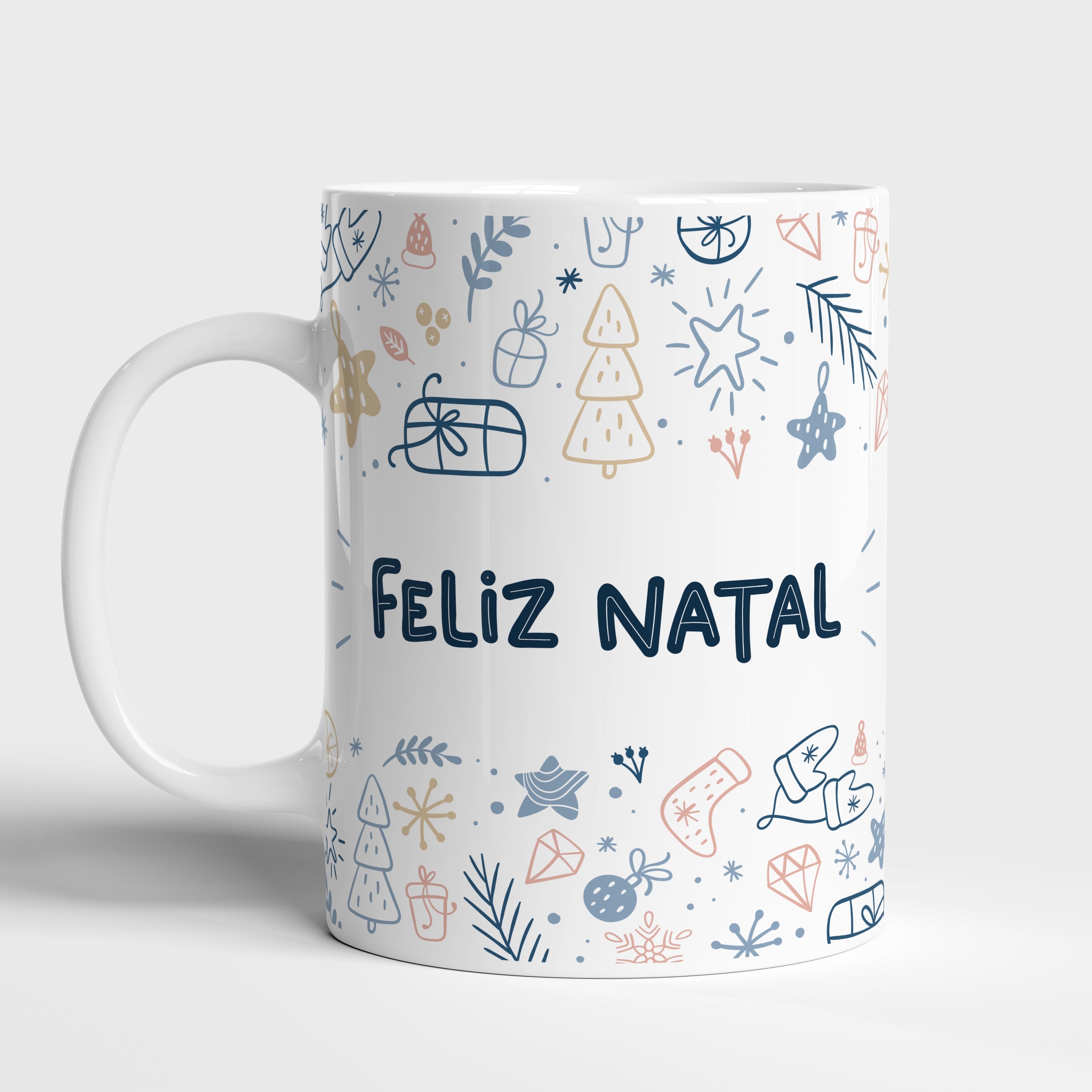Adquira a Caneca de Cerâmica Feliz Natal Azuis em tons de azul da Coleção de Natal e transforme cada gole em uma celebração tranquila e elegante do espírito natalino. Com seu design único e qualidade superior, ela é a escolha ideal para quem deseja adicionar um toque de serenidade e sofisticação às suas tradições natalinas.