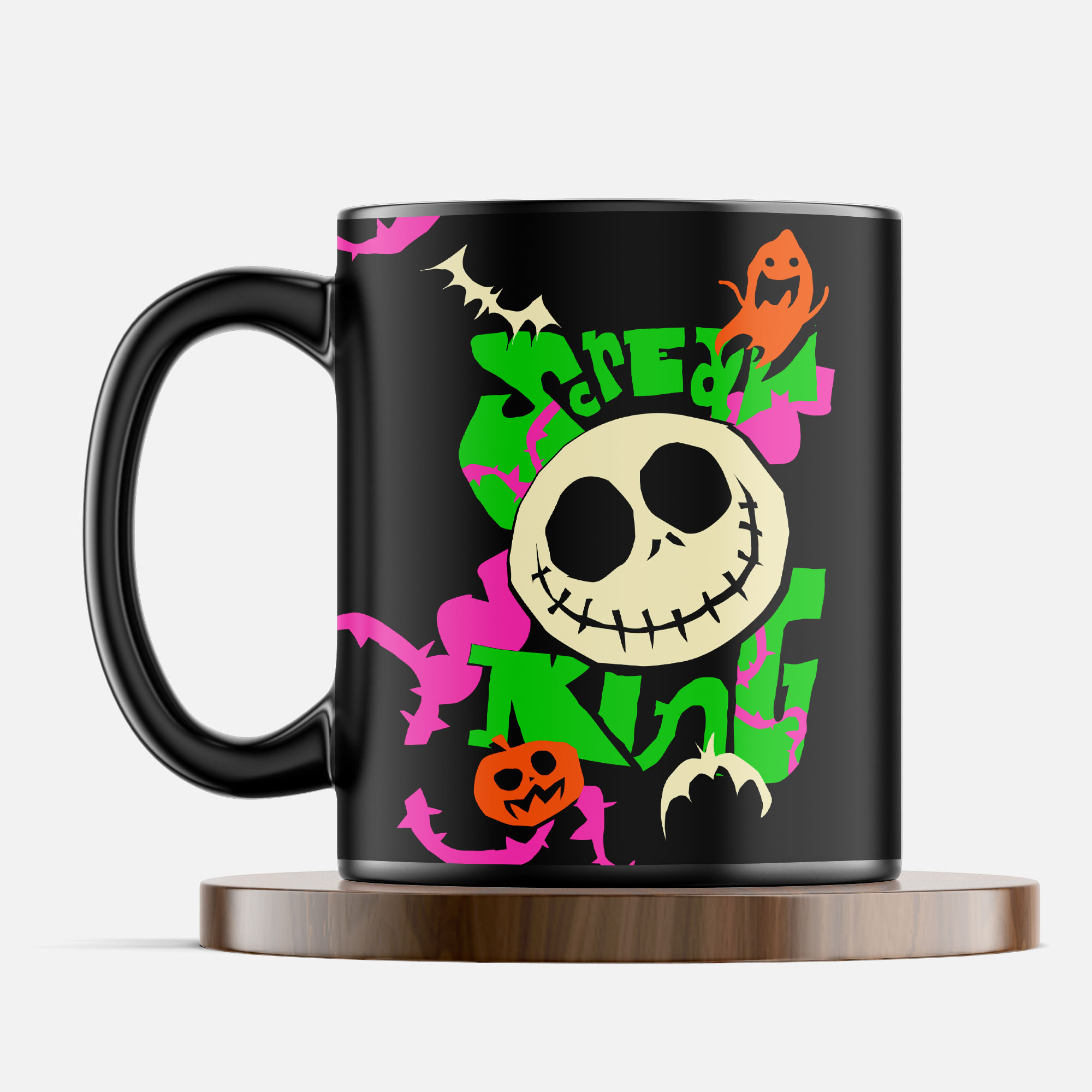 Fabricada em cerâmica de alta qualidade, a caneca é durável e possui capacidade de 300ml, ideal para manter seu café, chá ou chocolate quente sempre na temperatura certa. O fundo preto complementa o visual macabro e encantador da ilustração, tornando esta caneca um item essencial para colecionadores e para quem quer adicionar um toque de Halloween à sua rotina.